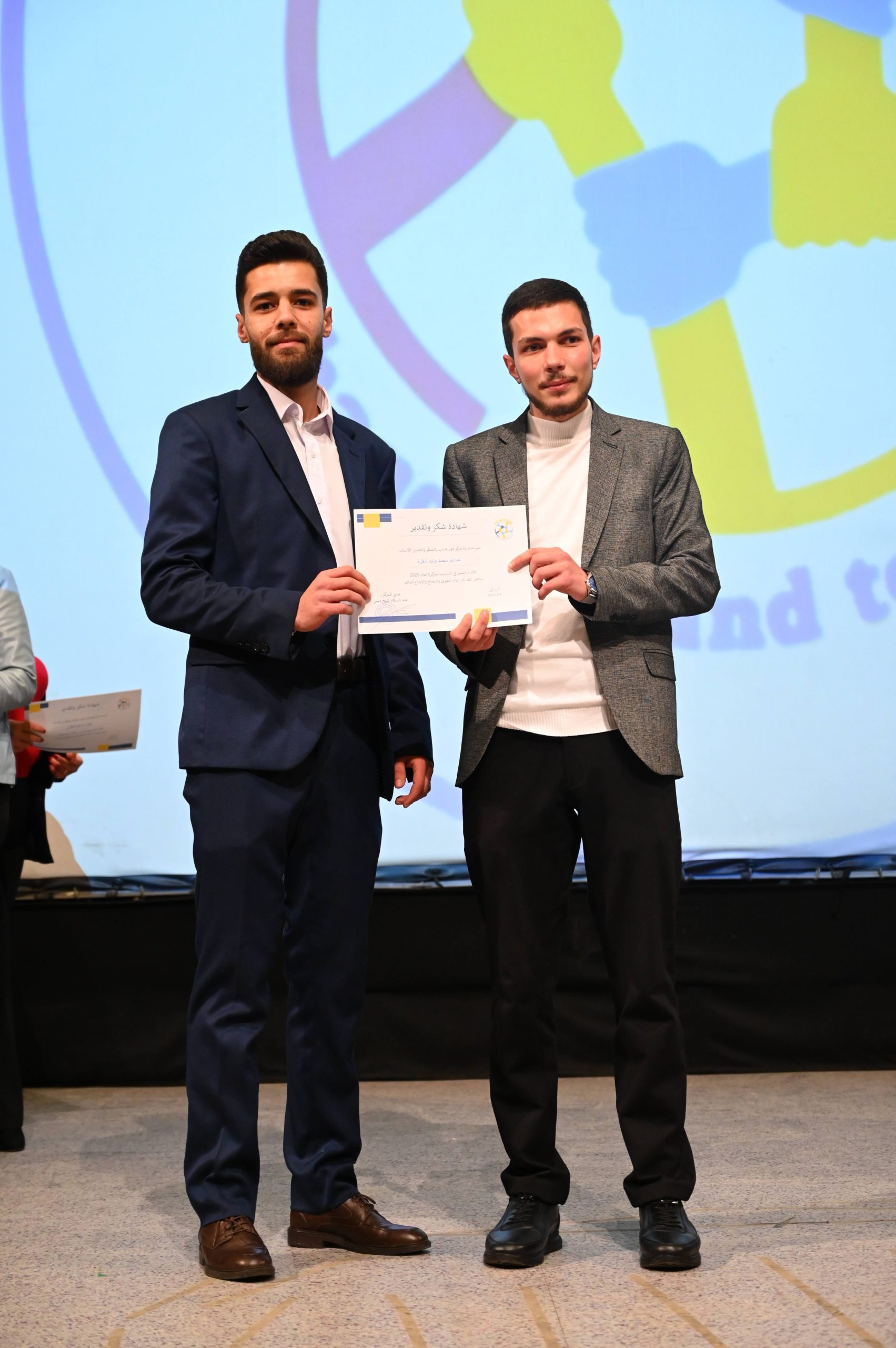 قام مركز فور هيلب بتكريم طلابه الذين نجحوا في عام 2025 في مركز فور هيلب بحمص وقدم شهادات شكر لهم وشارك أكثر من 100 مدرب ومدربة في هذا الحفل الكبير الذي أقيم في قصر الثقافة في حمص وقد حضر شخصيات عديدة من مديرية صحة حمص ومن مدرسة تمريض حمص ومن محافظة حمص حيث أكدوا على أهمية التعلم وبناء المهارات لكل فرد وأشاروا الى أن سوريا الحديثة يبدأ بناءوها بالعلم وبناء العقول والانسان